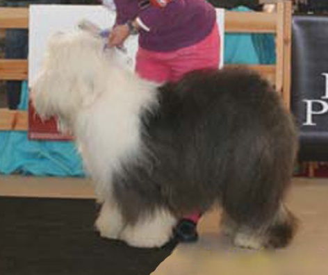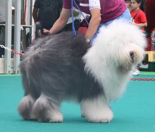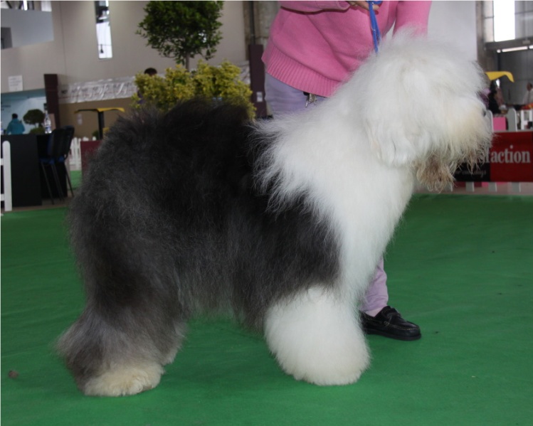 Excellent type and size. Excellent head. Correct mouth. Very good eyes and pigmentation. Very good neck. Excellent angulation and topline. Coat in between changes, but what's coming is excellent. Excellent low hocks. Typical movement for the breed. Lovely